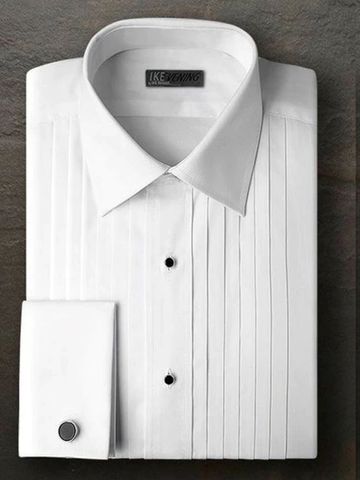 Don't want pleats? Then select our Classic Pointed Collar Tuxedo Dress Shirt with a Plain Front. Allows you to wear a Pre-Tied or a Self-Tied adjustable Tuxedo Tie.