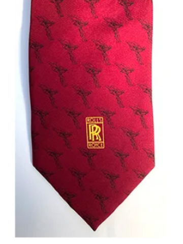 Custom Rolls Royce "Flying Lady" and RR Logo. Designed and made for Rolls Royce Owners Club of America. Tie was featured and sold in their catalog nationwide.